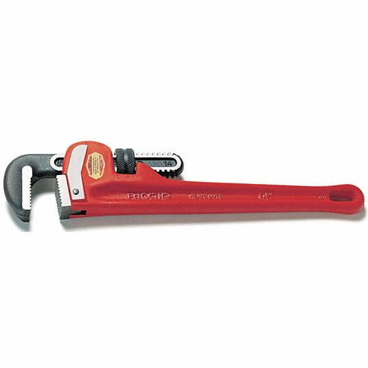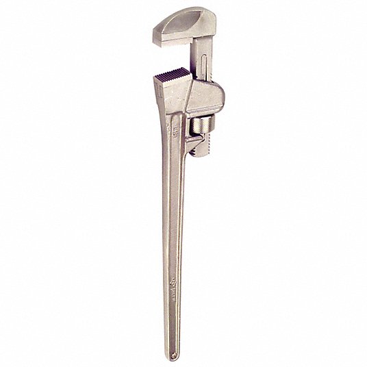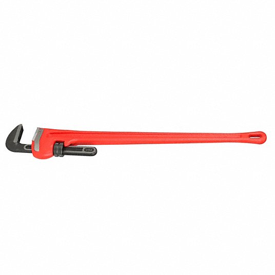 مفتاح ربط أنابيب مستقيم, من الحديد الزهر, سعة فك 6 بوصة, مسنن, الطول الإجمالي 48 بوصة