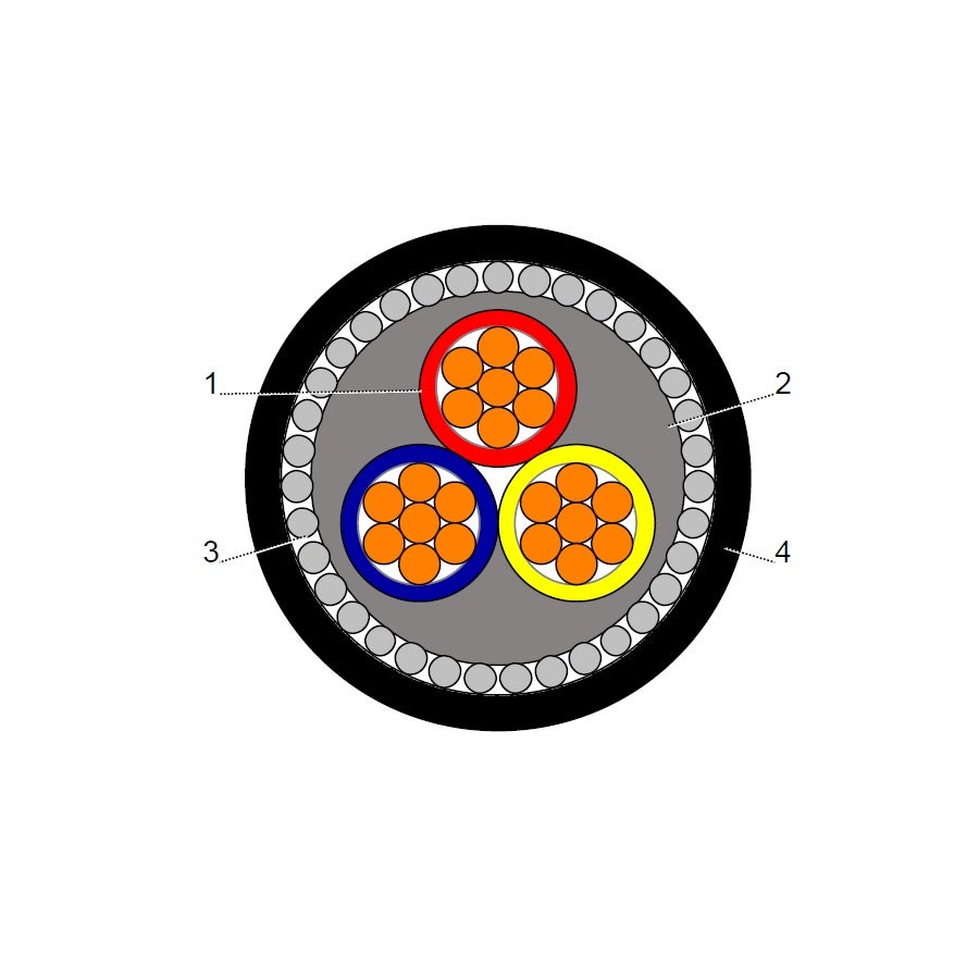 بحرة – كيبل XLPE نحاس – 3 خطوط – مقاس 25 مم – مسلح – SWA – أسود – 600/1000 فولت – LS0H