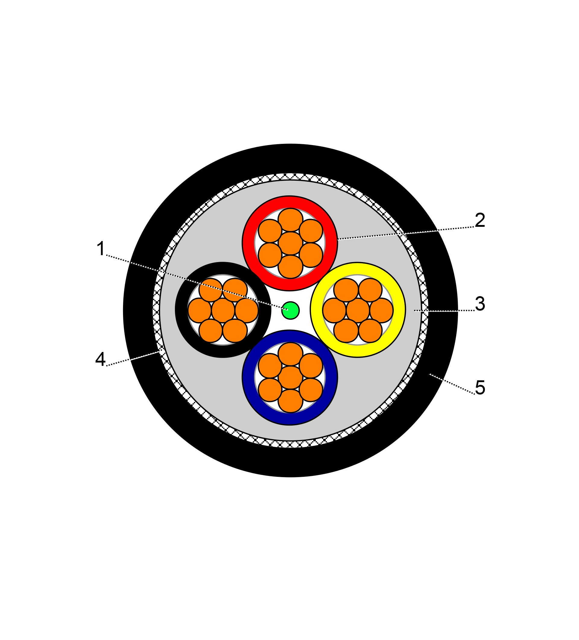 بحرة – كيبل XLPE نحاس – 4 خطوط – مقاس 10 مم – مسلح STA – أسود – 600/1000 فولت