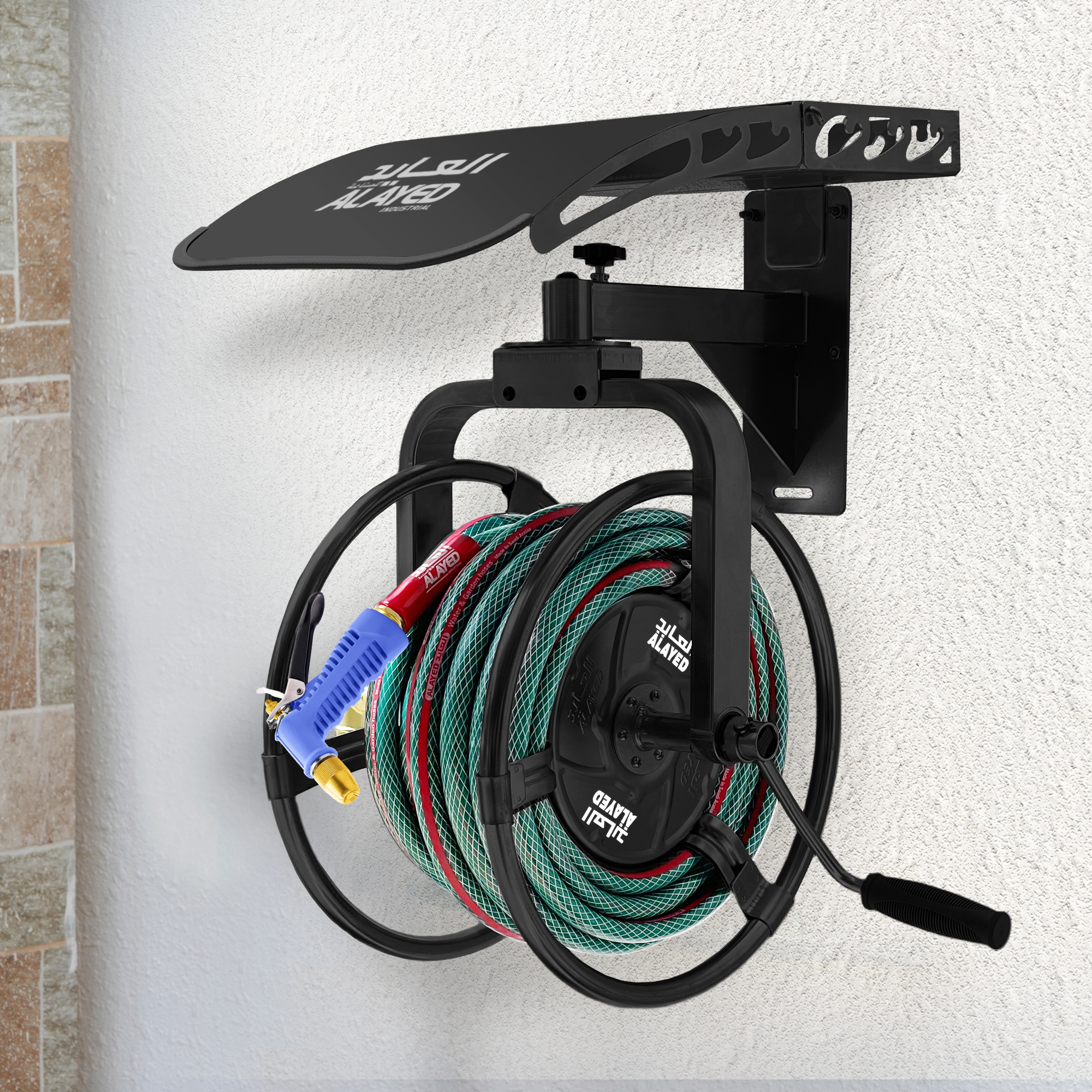 يسمح جسم البكرة بالدوران 360 درجة بحيث يمكن وصول خرطوم الماء للوصول إلى أى مكان بالحديقة أو حوش المنزل و يمكن تجميع وتثبيت البكرة بكل سهولة