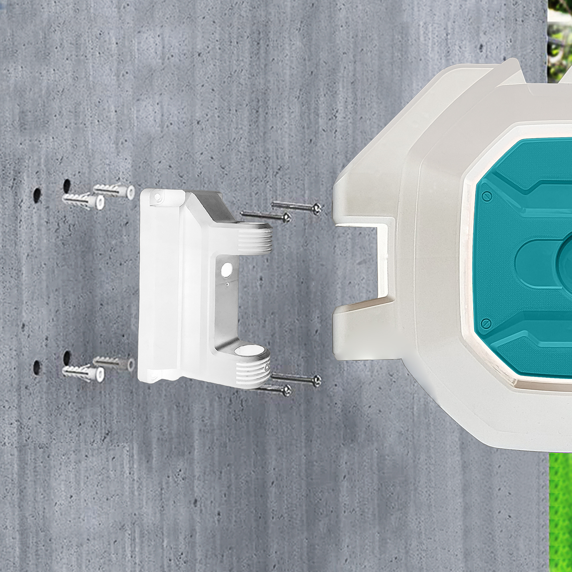 3.خذ دعامة التثبيت كقالب لتحديد موضع البراغي وحفر أربعة ثقوب على الحائط