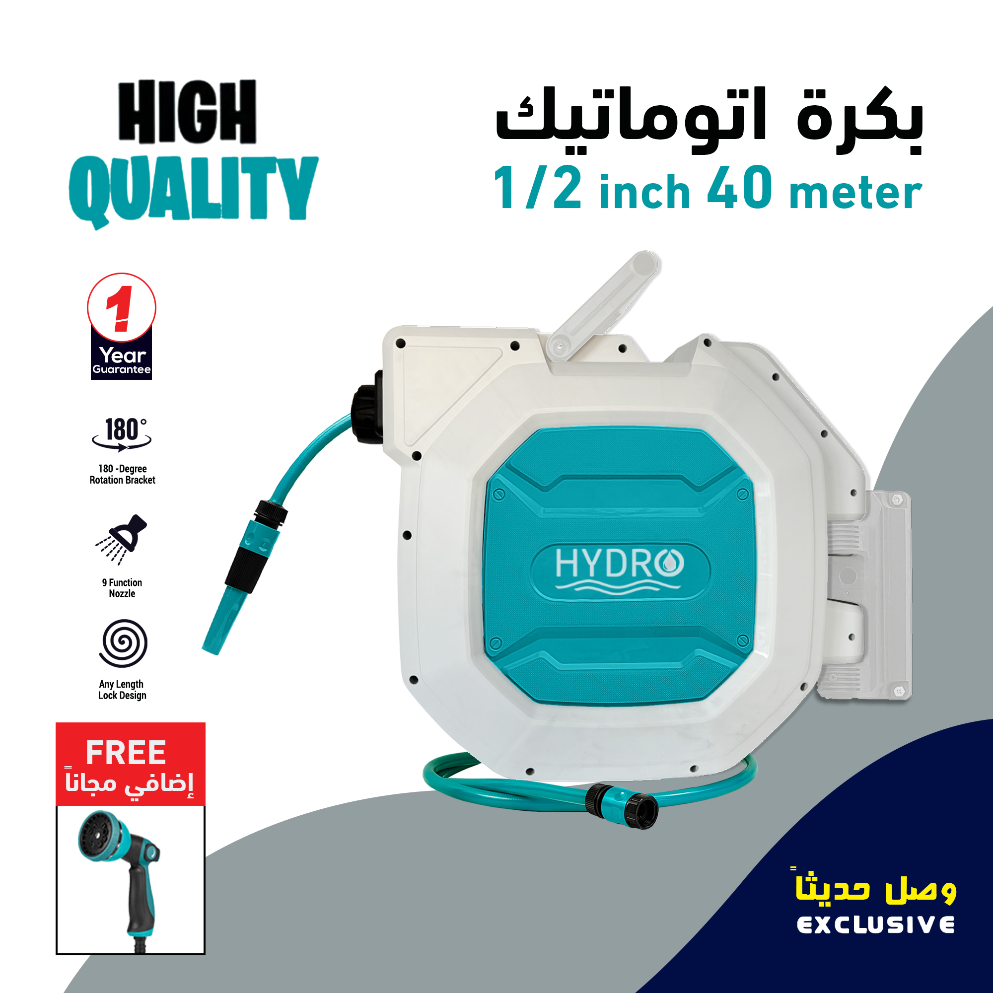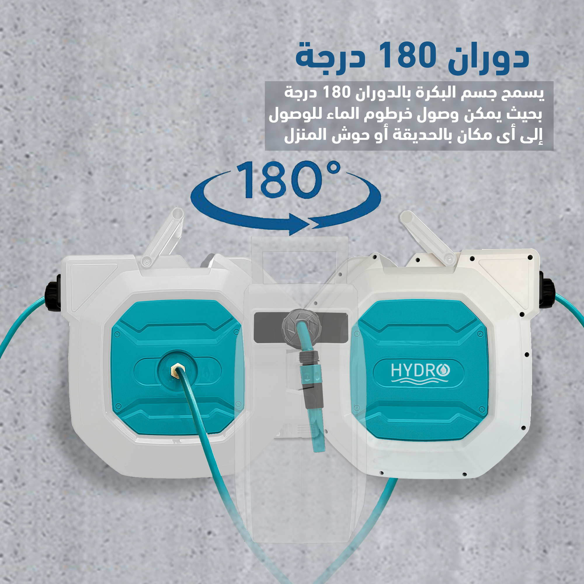 بكرة اوتوماتيك دوران 180 درجة مثالية للمنازل والحدائق تتحمل الضغط العالي توصيلة اللي بين الصنبور والبكرة 2 متر لنقل المياه من المصدر الى البكرة