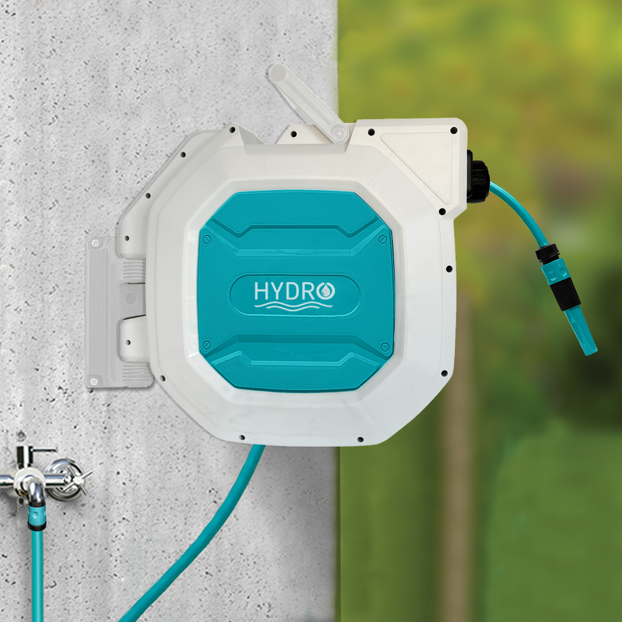 البكرة مزودة بنظام إعادة لف تلقائي وهي مخصصة للإستخدام في المنازل والحدائق أو غسيل السيارات وما إلى ذلك.