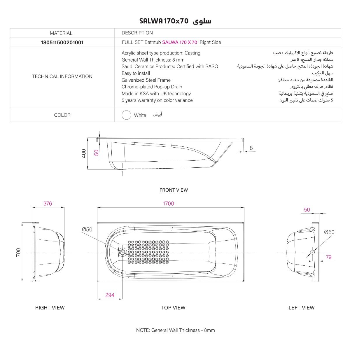 المقاس: 170×70 سم اللون: أبيض شامل الإطار والألواح المقاس: 170×70 سم اللون: أبيض شامل الإطار والألواح