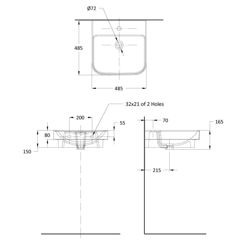 حوض مغسلة 48 سم – موديل ب راديوس