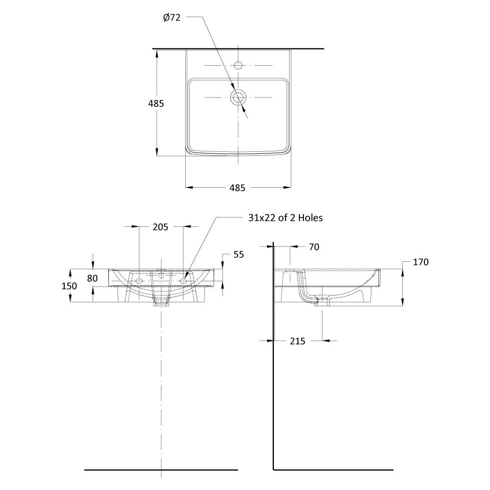 حوض مغسلة 48 سم – موديل ز