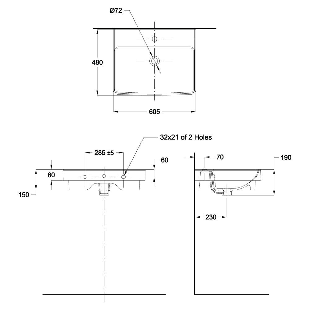 حوض مغسلة 60 سم فوق الرف – موديل ز