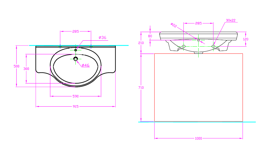 حوض مغسلة 91 سم – بدور 900