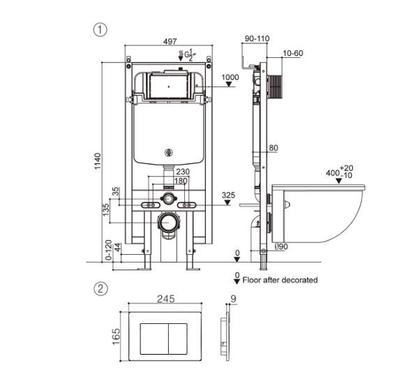 خزان سيفون مخفي للكراسي المعلقة مع غطاء طرد لوحي مزدوج