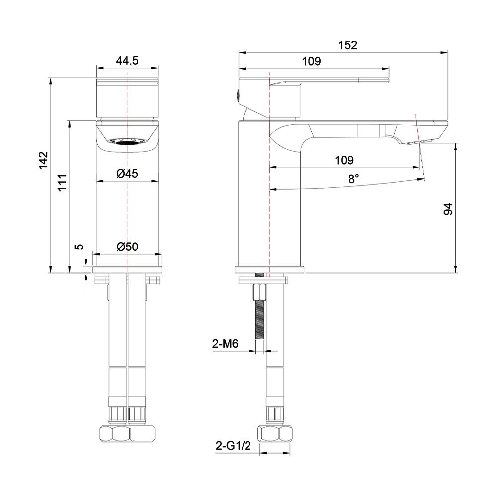 Core material: Brass, Handle: Zinc Alloy, Cartridge: Wanhai, Aerator: Neoperl, Fitting: Flexible tail pipe CHROME (Warranty 5 years)