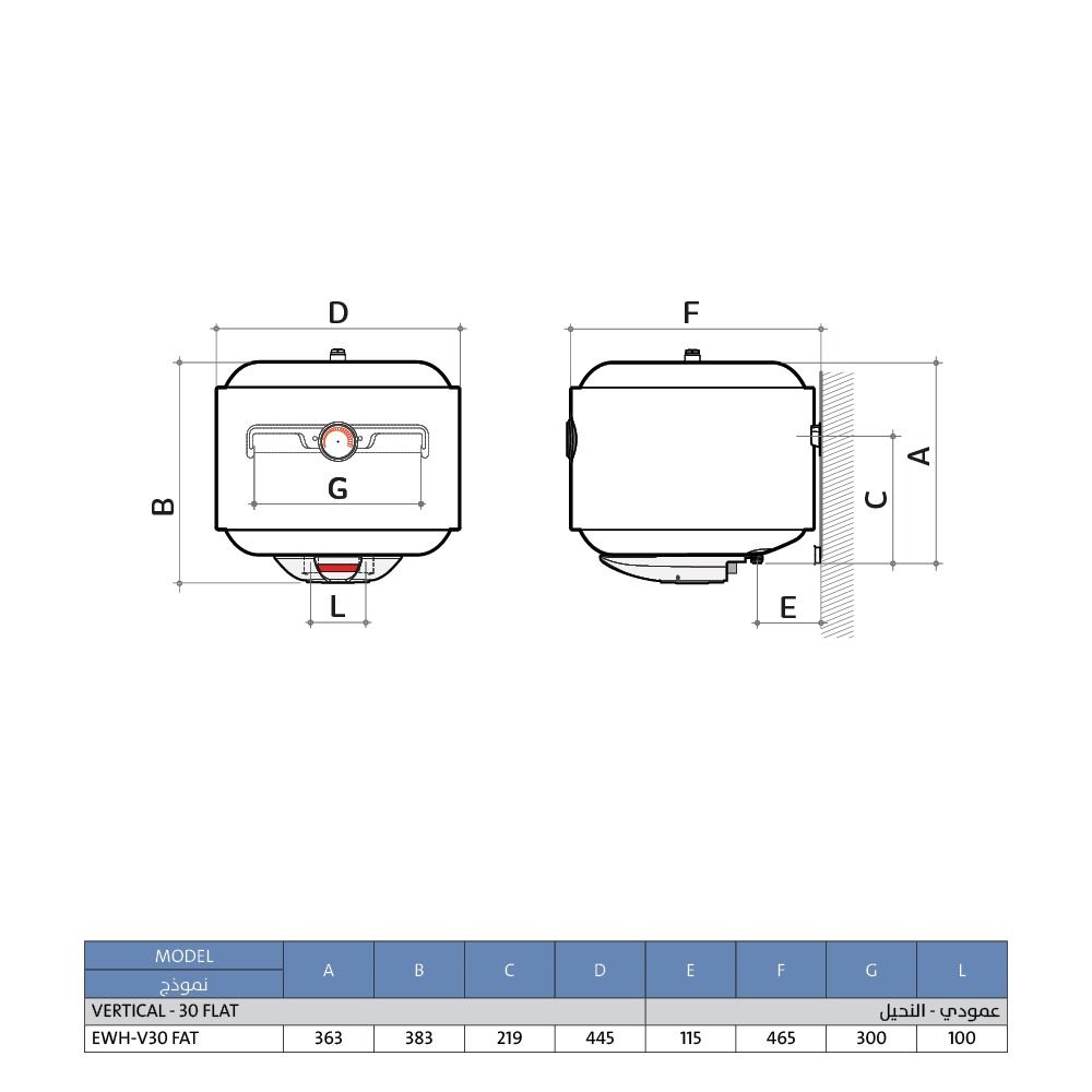 سخان مياه كهربائي 30 لتر عمودي عريض الخزف السعودي – سيروزا