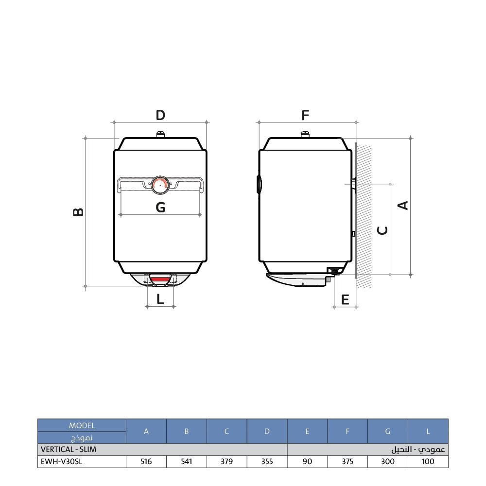سخان مياه كهربائي 30 لتر عمودي نحيف الخزف السعودي – سيروزا