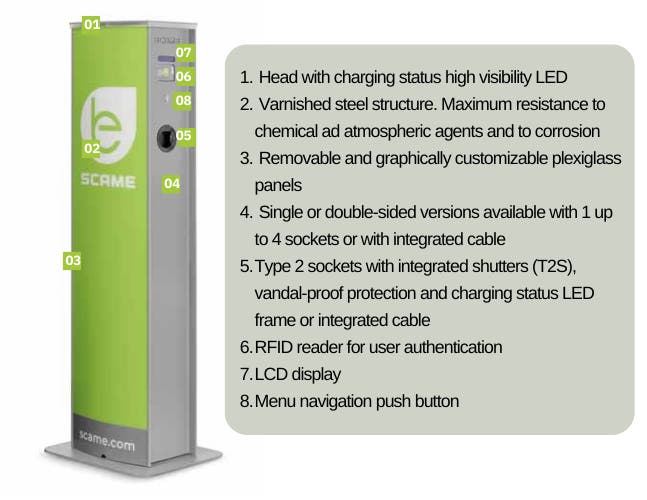 - Can be managed via the Scame Management System or connected to an OCPP backend, depending on the version.