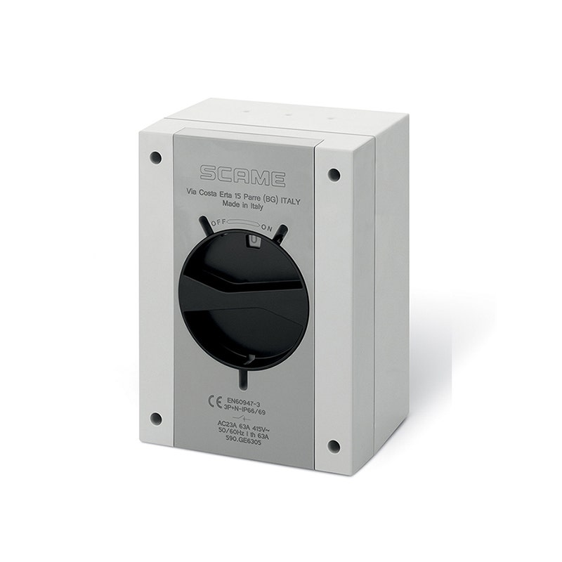 سكامي – مفتاح فصل مغلق (AC22A/AC23A)، 160A، 3P + N، IP66/IP69، 240x340x137mm، Y5 IK09، عام رمادي/أسود، GW 650°C