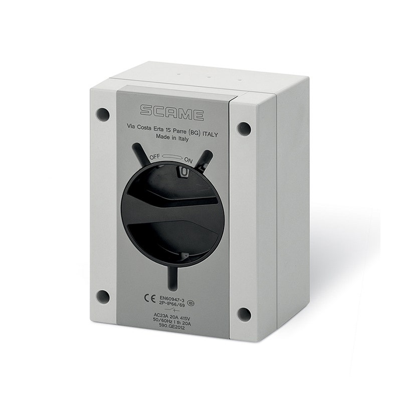 سكامي – مفتاح فصل مغلق (AC22A/AC23A)، 25A، 6P، IP66/IP69، 160x220x115mm، Y3 IK09، عام رمادي/أسود، GW 650°C