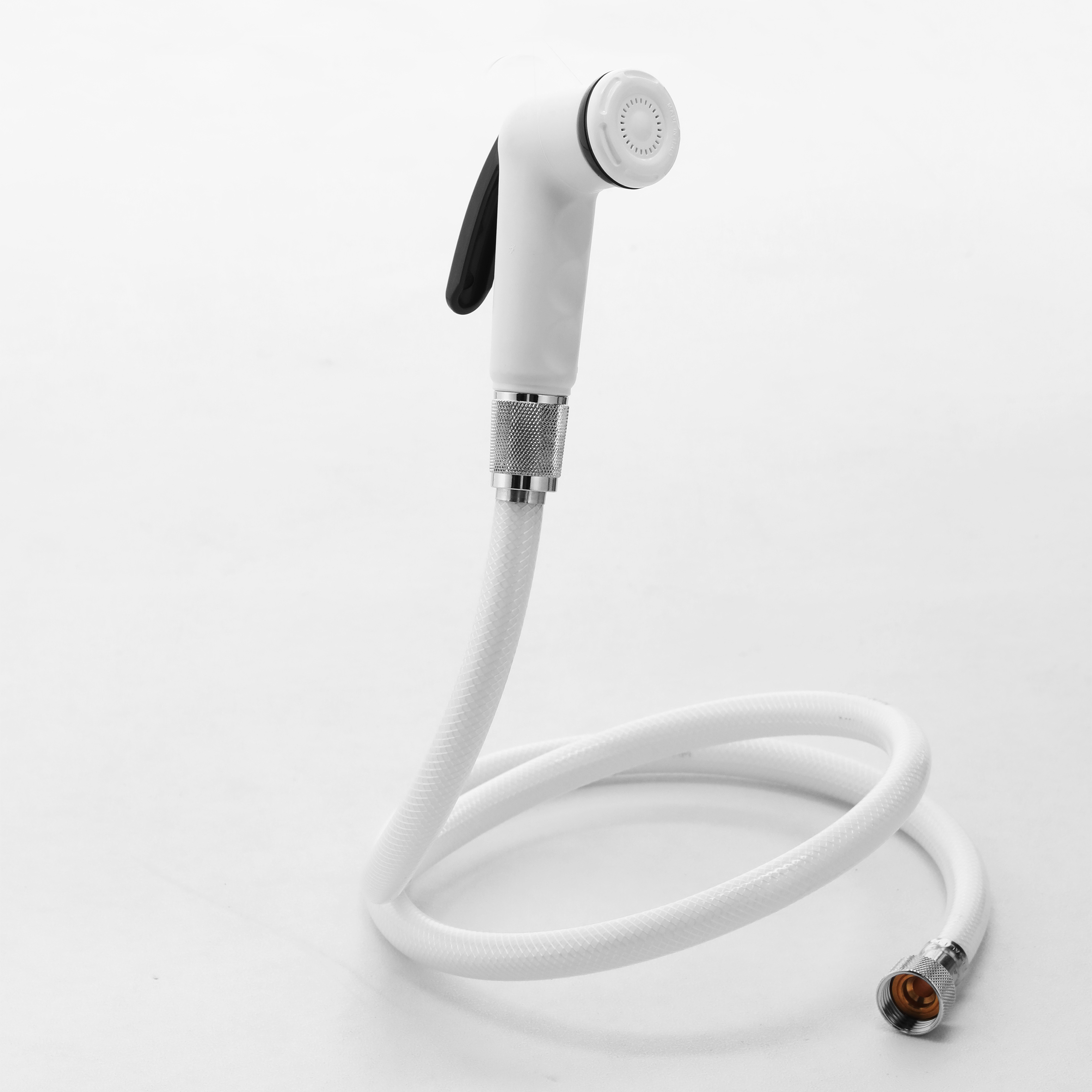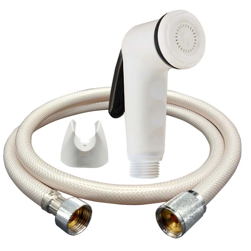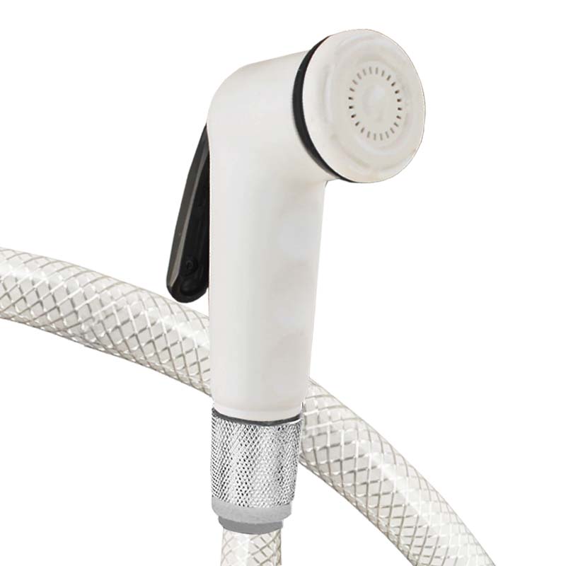 طقم شطاف شكا كروم مع رشاش أبيض وحامل ، مع طراز خرطوم NYL SIL.