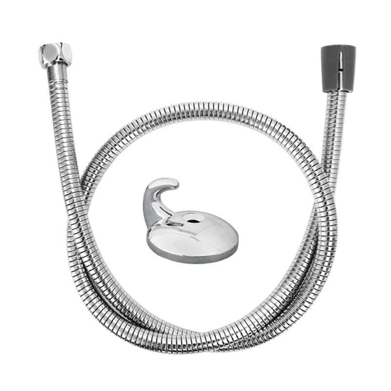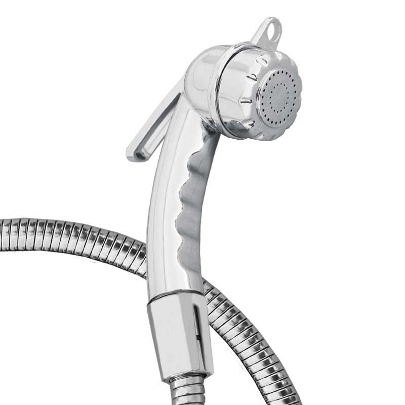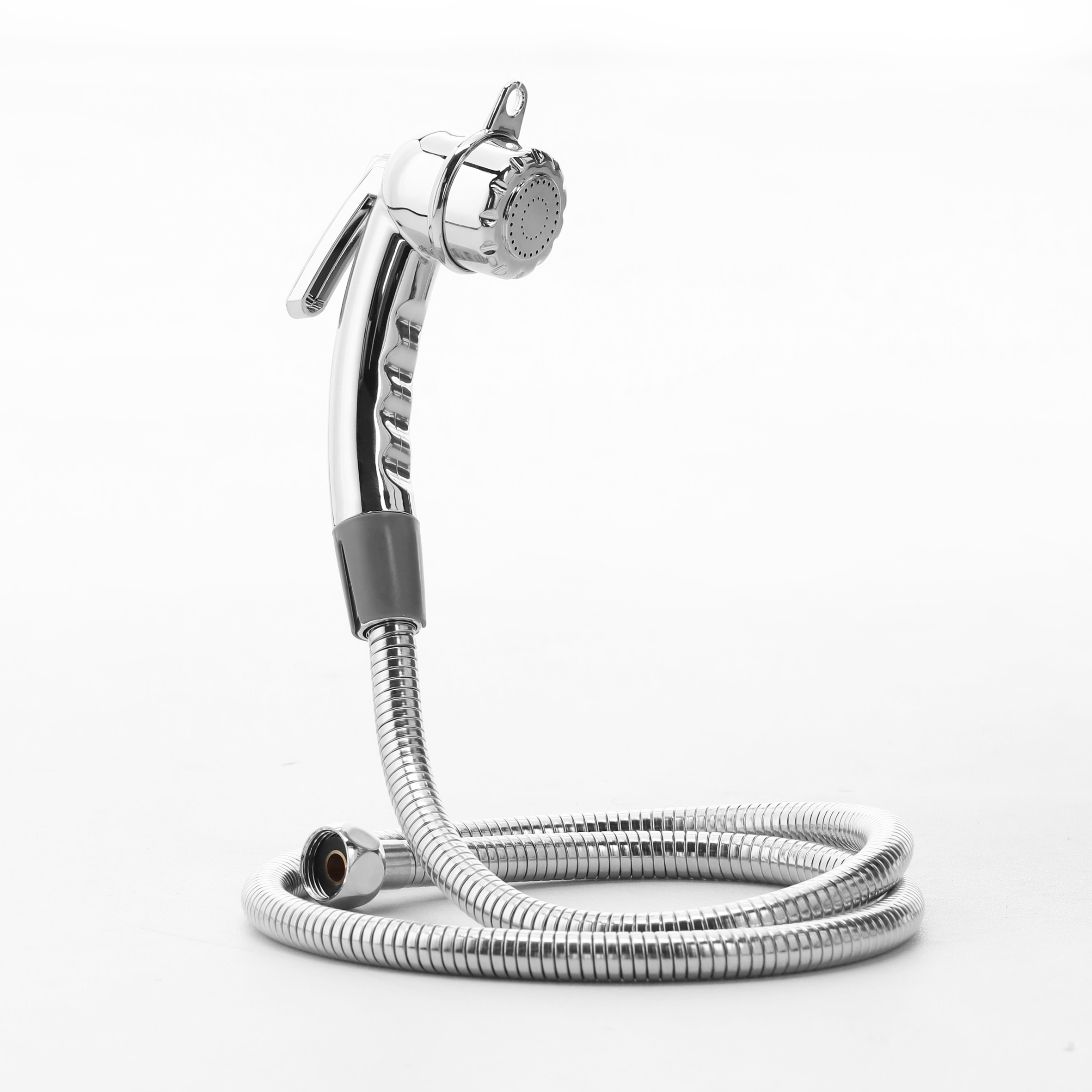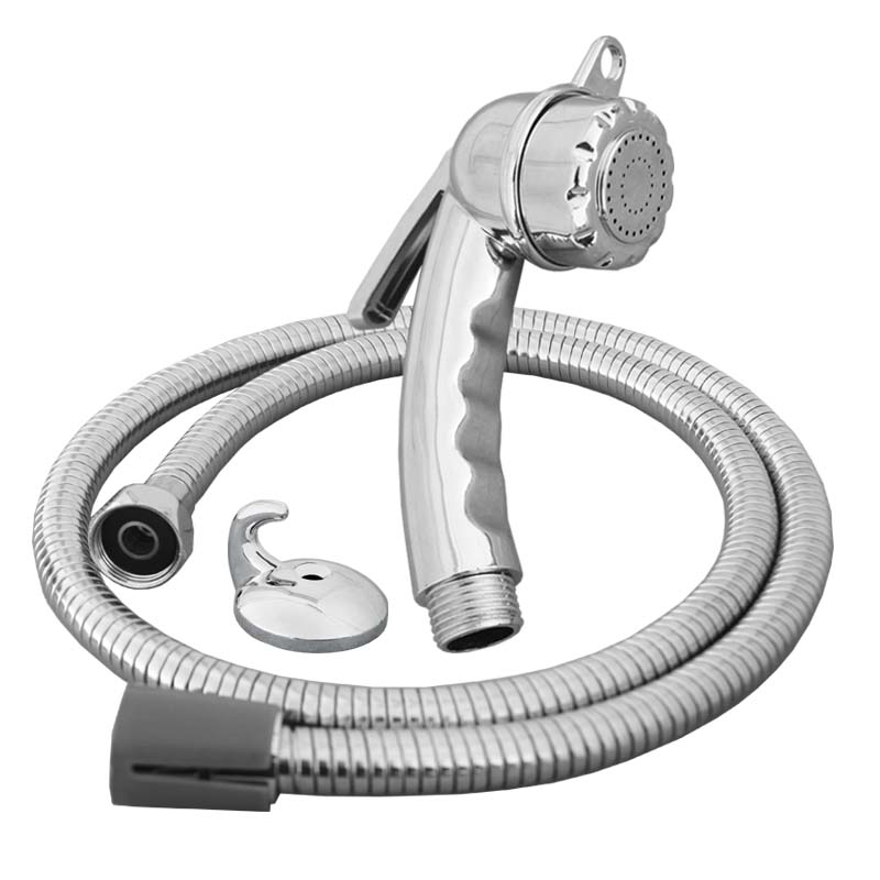 طقم شطاف مع حامل مطلي بالكروم باللون الفضي مع خرطوم 1.25 متر مصنع داخلياً من الــ بي في سي