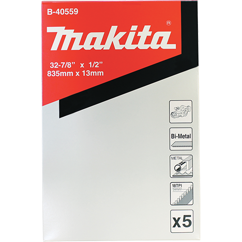 يتم تصنيع شفرات المنشار الشريطية المدمجة المحمولة من ماكيتا باستخدام عملية لحام محسّنة لحياة أطول. تم تصميم طقم الأسنان المتموج لقطع المواد المختلفة بما في ذلك الفولاذ والفولاذ المقاوم للصدأ بكفاءة. يعني الهيكل ثنائي المعدن عمرًا أطول للشفرة.