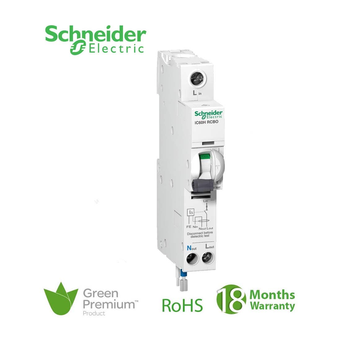 شنايدر – قاطع حماية من التسريب الأرضي – Acti9 iC60H, Earth Leakage, 1P + N, C Curve, 6A, 30mA, 240 V