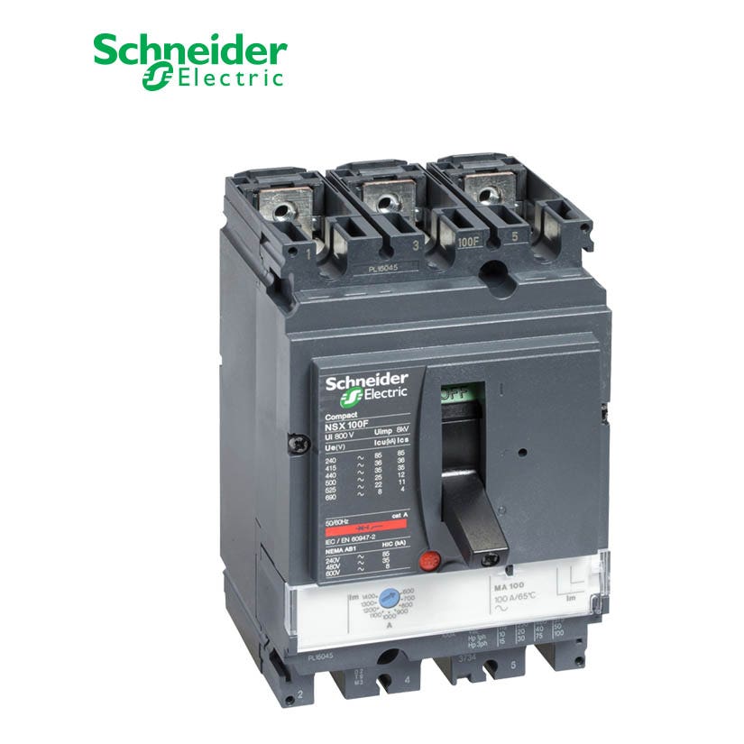 شنايدر – قاطع رئيسي 100 أمبير – ComPact NSX100H, 3P 3d, 70kA at 415 VAC, MA Trip Unit 100A