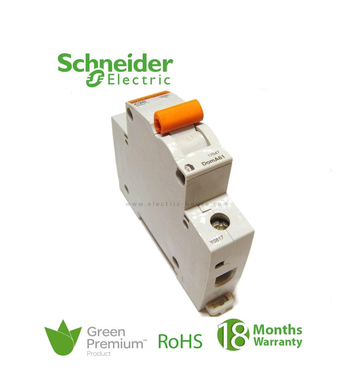 شنايدر – قاطع فرعي 1 خط – 20 أمبير – Domae, 1P, 20A, C Curve, 6000A