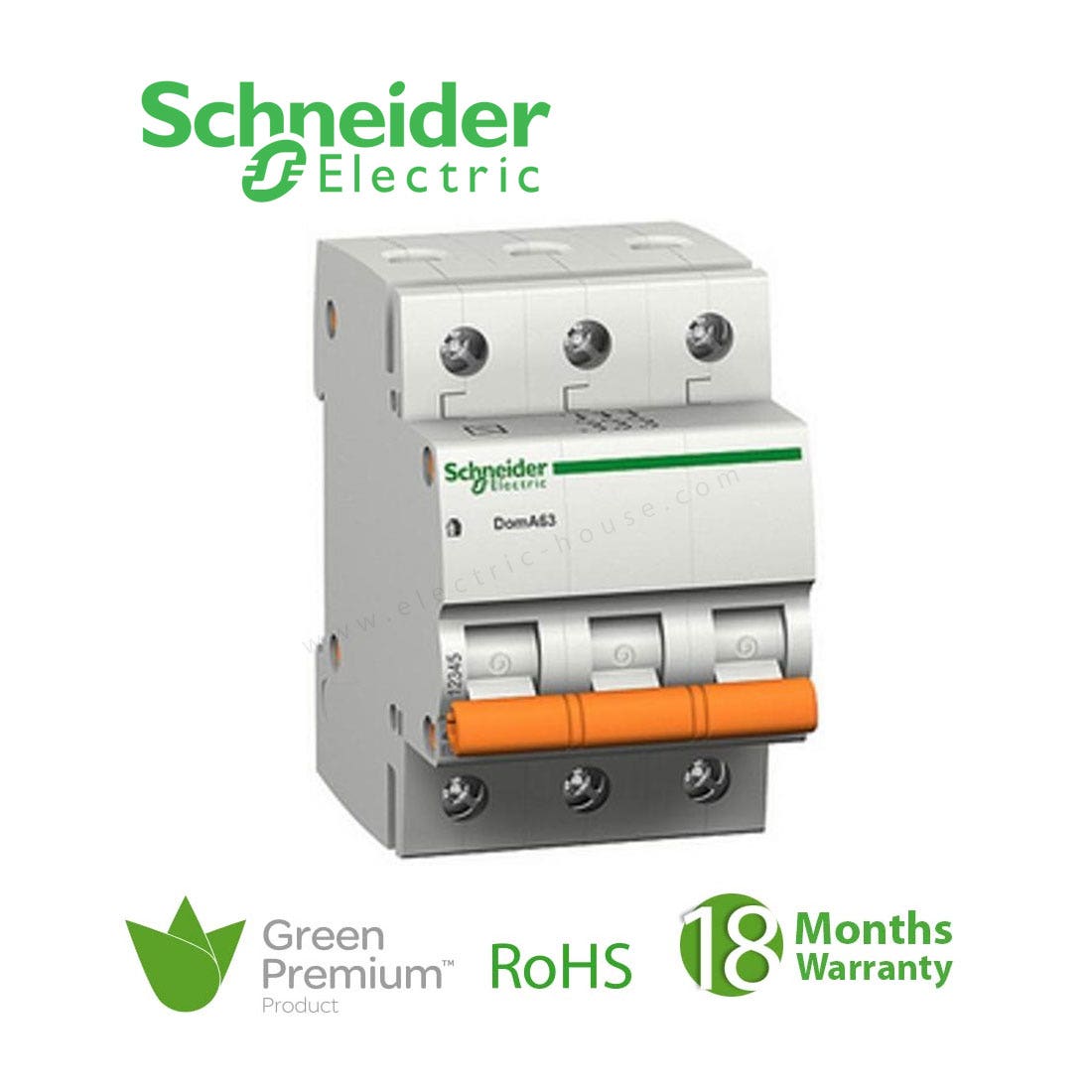شنايدر – قاطع فرعي 3 خط – 10 أمبير – Domae, 3P, 10A, C Curve, 6000A