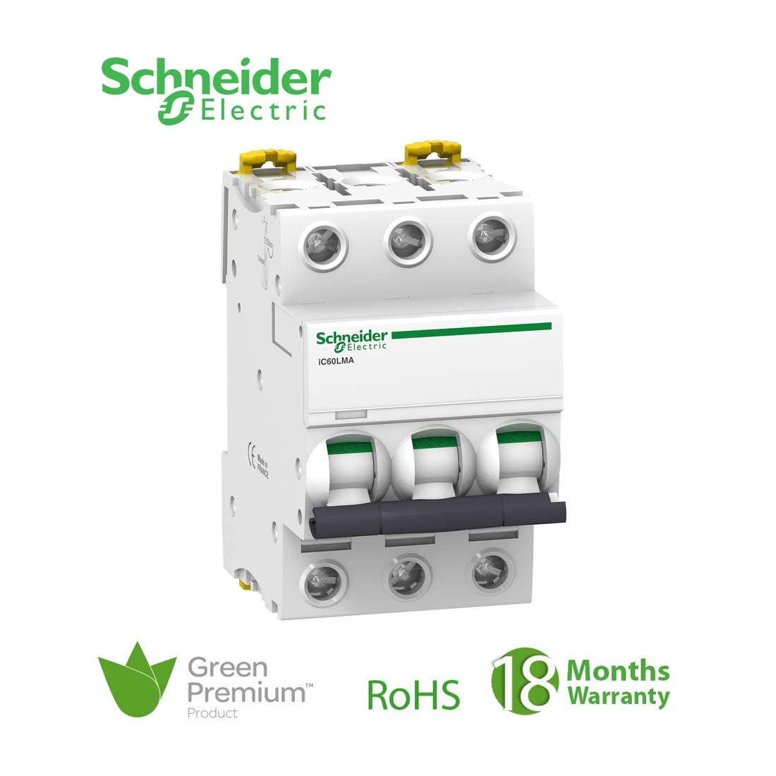 شنايدر – قاطع فرعي 3 خط – 12.5 أمبير – Acti9 iC60L, 3P, 12.5A, MA Curve