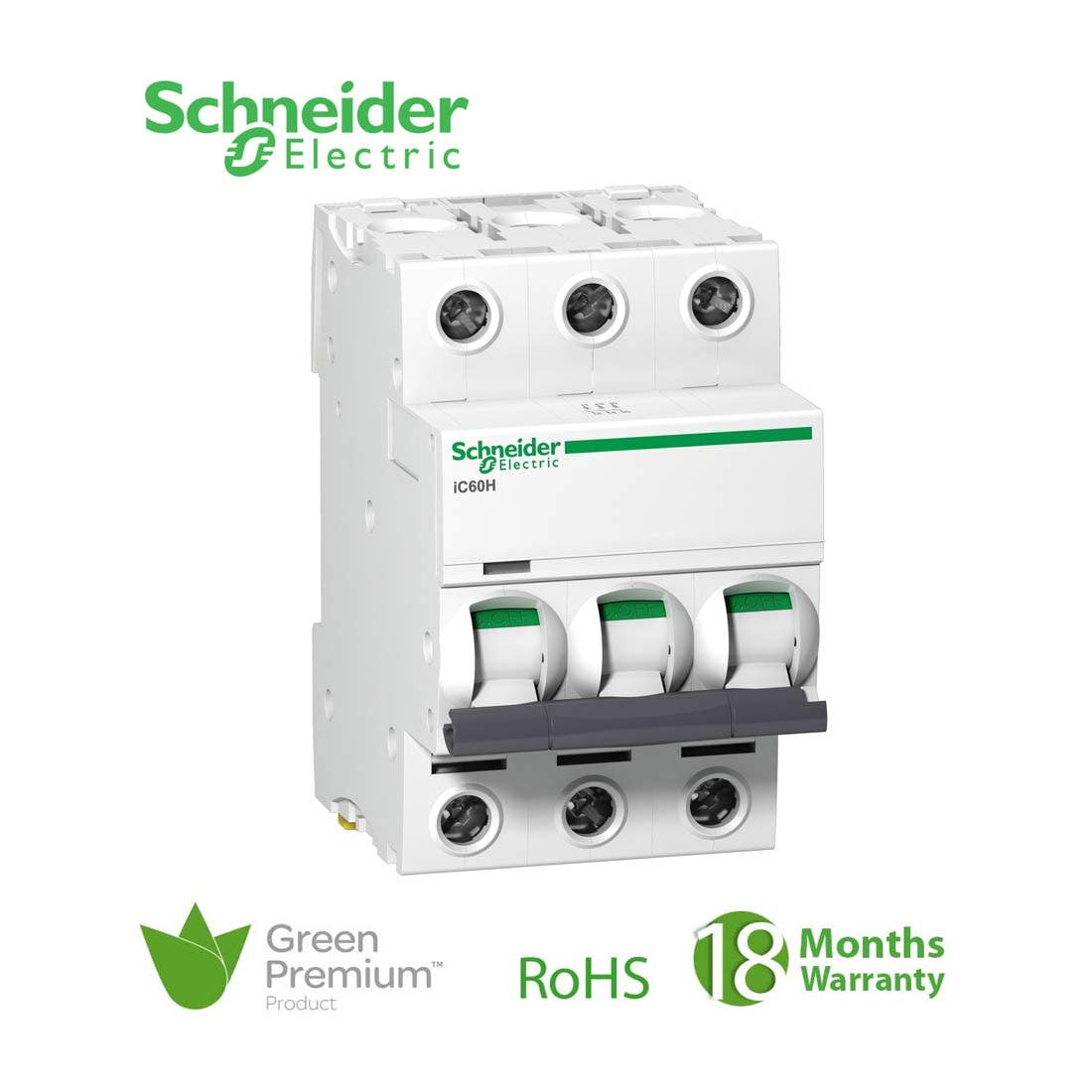 شنايدر – قاطع فرعي 3 خط – 50 أمبير – Acti9 iC60H, 3P, 50A, B Curve