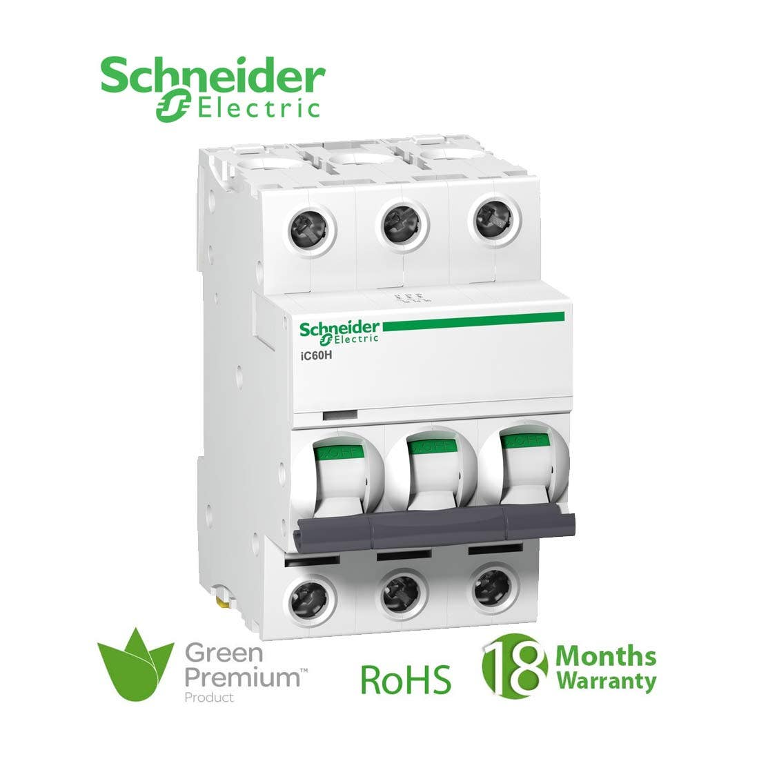 شنايدر – قاطع فرعي 3 خط – 6 أمبير – Acti9 iC60H, 3P, 6A, C Curve