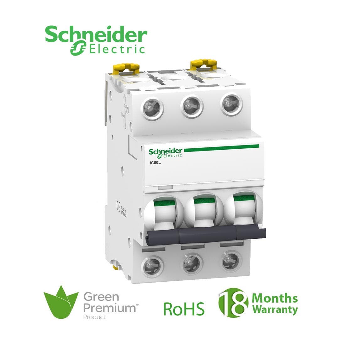 شنايدر – قاطع فرعي 3 خط – 6 أمبير – Acti9 iC60L, 3P, 6A, C Curve