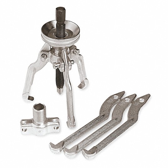 يتضمن على / 2 و 3 مخاريط ، 4 و 6 بوصة فكوك قابلة للانعكاس ، طرف قابل للفصل ، برغي إجباري ، دبوس محوري ، مخروط تعديل قابل للانعكاس
