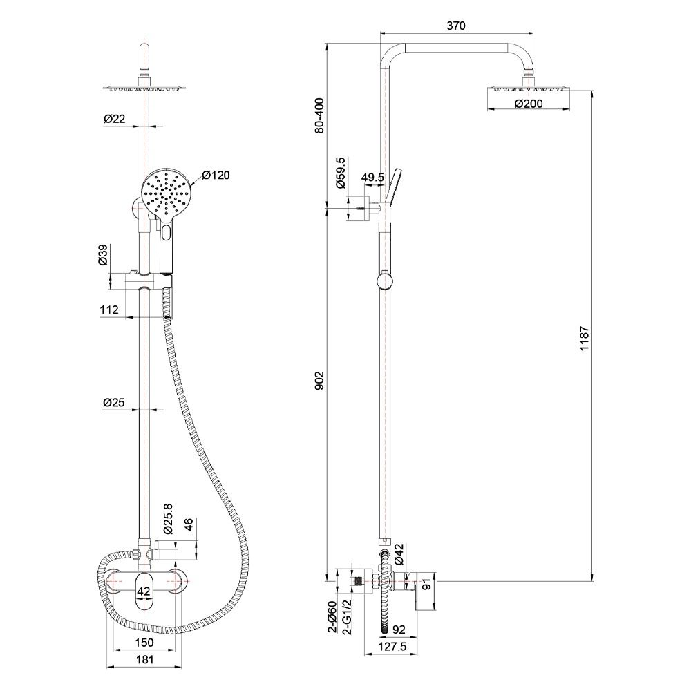 يشمل: حامل جداري مع رأس دش، 20 سم ، سماعة دش بثلاثة أنظمة تدفق، لي 1.5متر يشمل: حامل جداري مع رأس دش، 20 سم ، سماعة دش بثلاثة أنظمة تدفق، لي 1.5متر