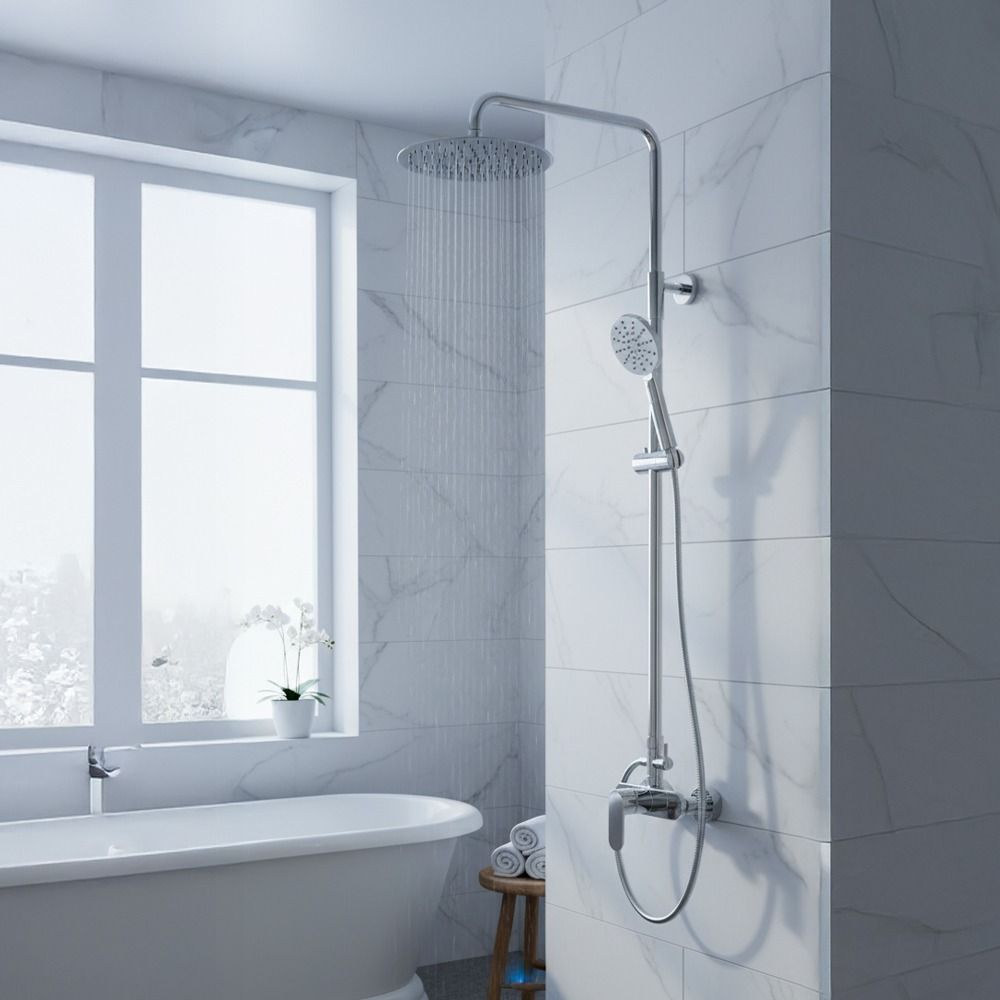 يشمل: حامل جداري مع رأس دش، 20 سم ، سماعة دش بثلاثة أنظمة تدفق، لي 1.5متر يشمل: حامل جداري مع رأس دش، 20 سم ، سماعة دش بثلاثة أنظمة تدفق، لي 1.5متر
