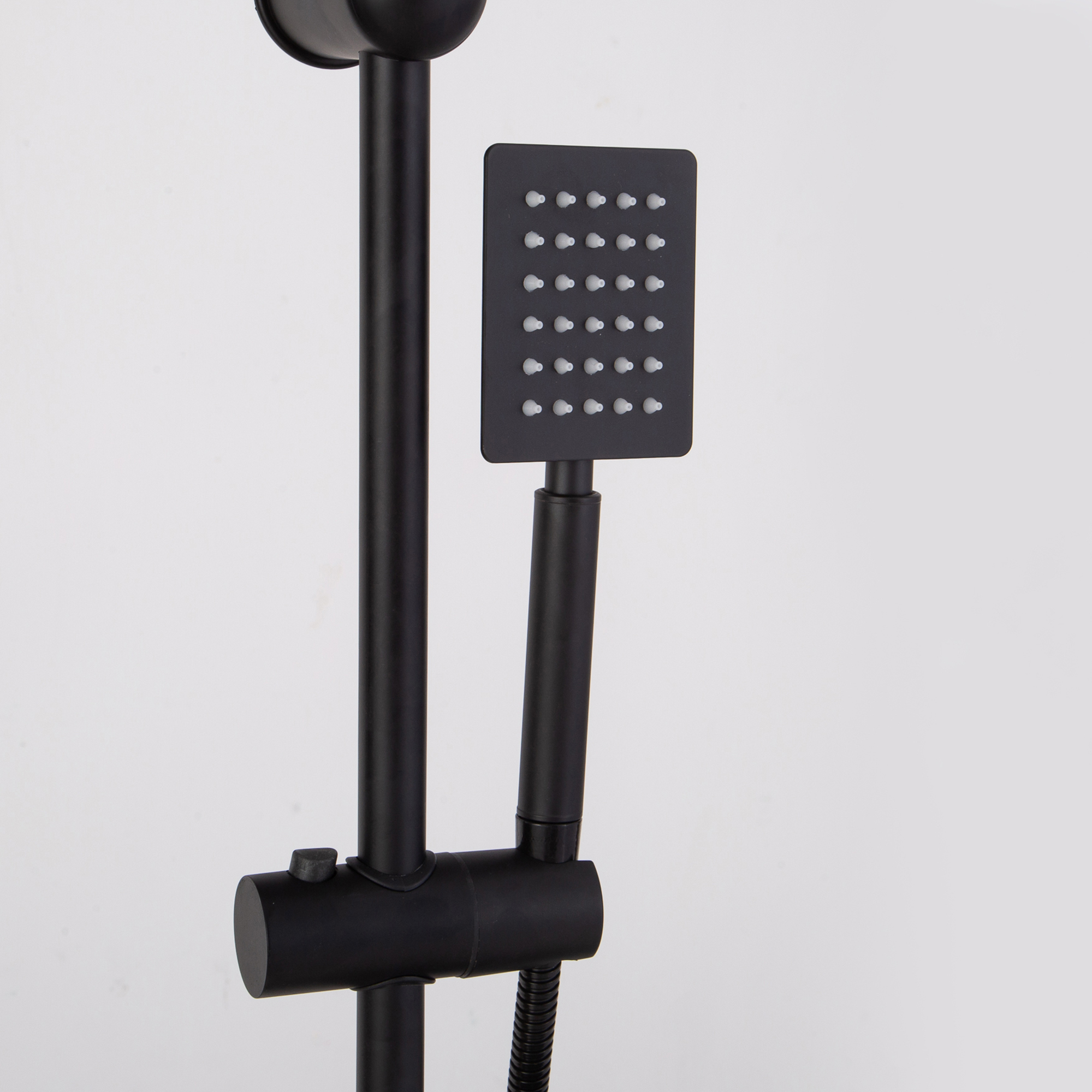 نظام الدش مضادًا للأكسدة ومضادًا للخدش ، مما يضمن المتانة أثناء الاستخدام الداخلي والخارجييحتوي على 3 وظائف، دش مطري علوي ورذاذ محمول باليد وصنبور حوض استحماميمكن تعديل ارتفاع دش المطر ودعامة الدش اليدوية بسهولة