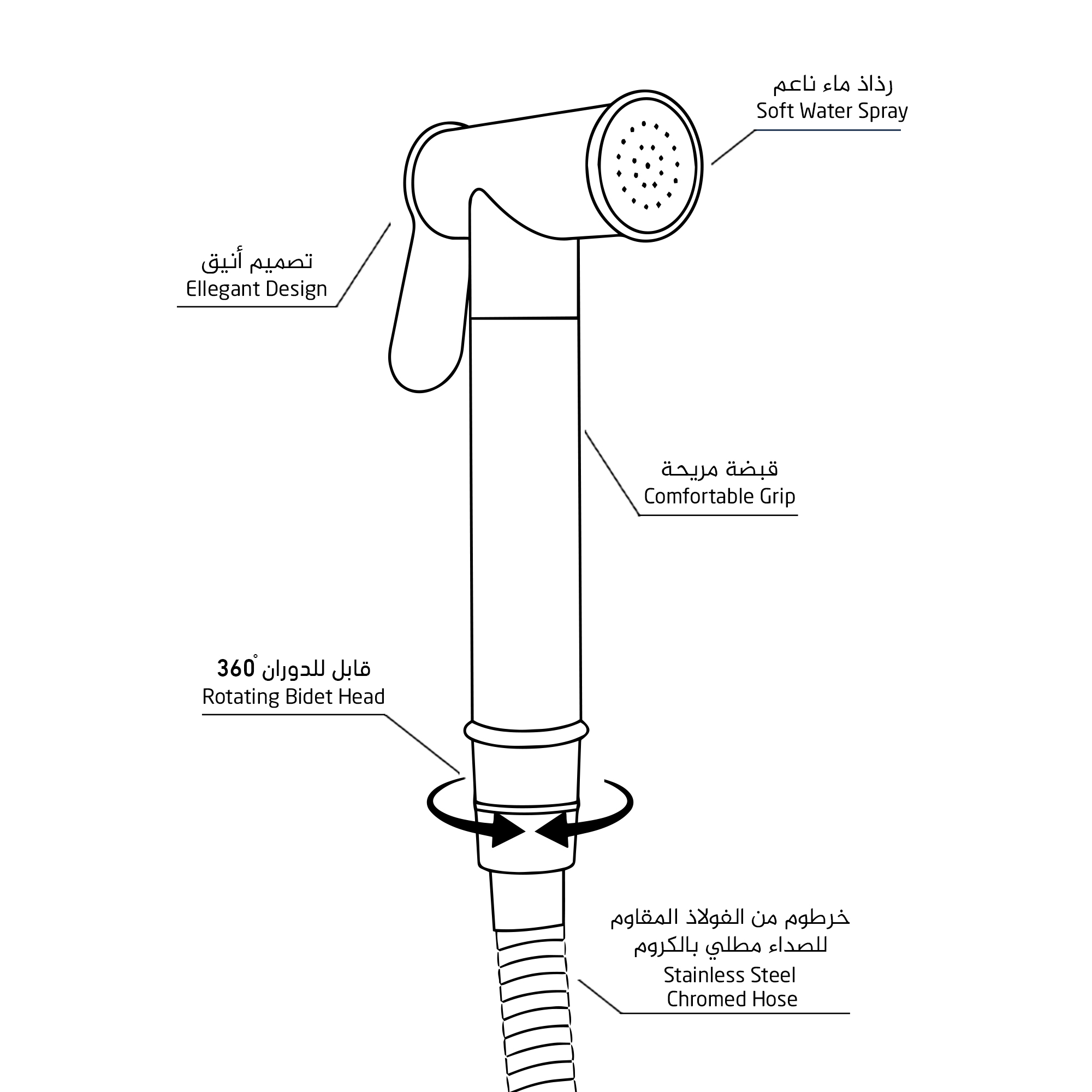مصنوع من الستانلس ستيل المقاوم للصدأ، مع رأس يدور 360 درجة لسهولة التحكم.