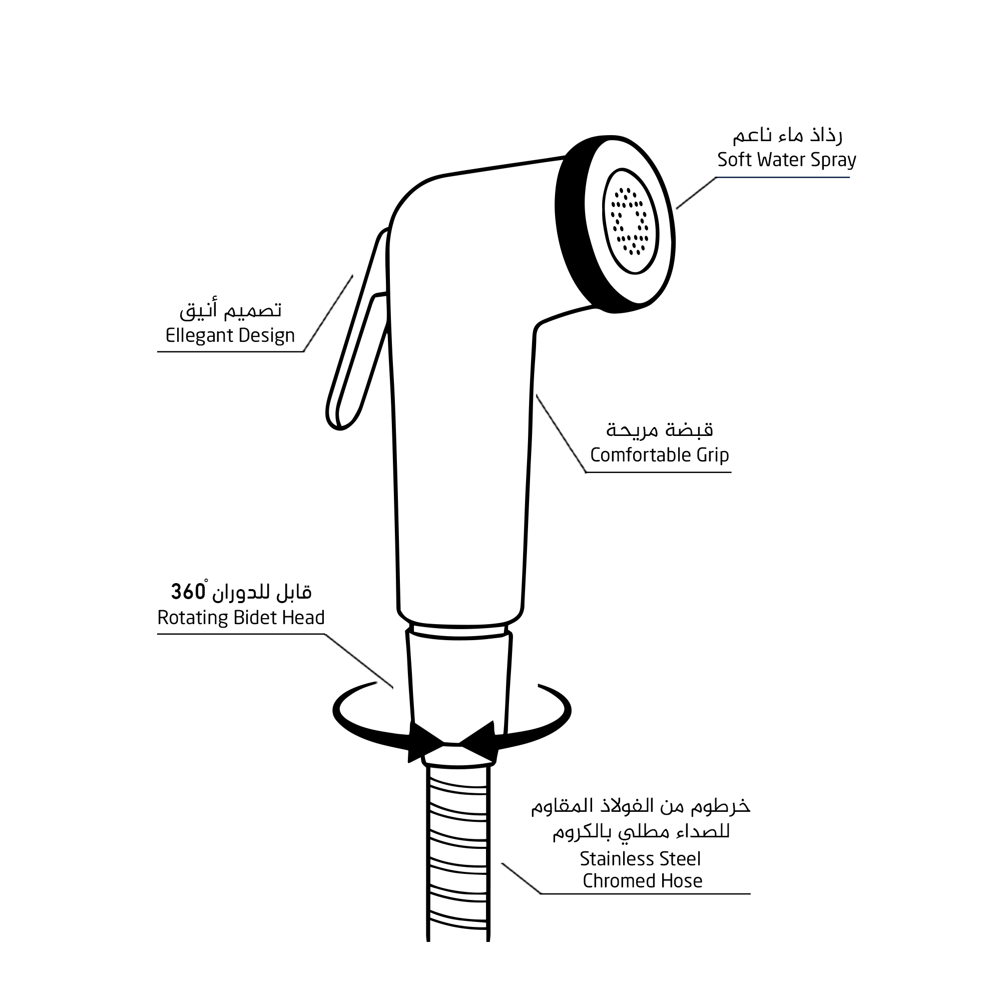 لمسة كروم فاخرة تضيف مظهراً عصرياً، مع رأس يدور 360 درجة.