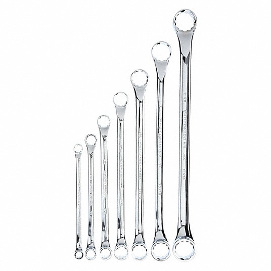 طقم مفاتيح ربط مغلق الوجهين, فولاذ, طبقة خارجية من الكروم, عدد الأدوات 7 , 3/8 بوصة إلى 1 1/8 بوصة