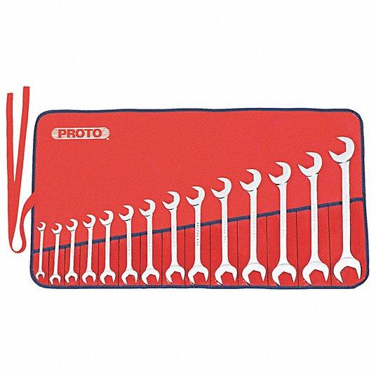 طقم مفتاح ربط بوجهين نهاية مفتوحة، فولاذي، طبقه خارجيه كروم، عدد 14 أداة، نطاق أحجام الرأس 3/8 بوصة 1 1/4 بوصة