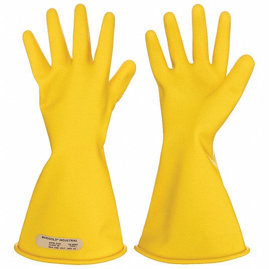 قفازات عازلة للكهرباء فئة جهد 00 ، أصفر ، 500 فولت تيار متردد / 750 فولت تيار مستمر
