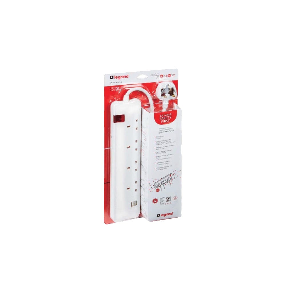ليجراند – توصيلة كهربائية مواصفات بريطانية – 4 مداخل كهرباء + مدخلين USB – طول 5 متر – أبيض/رمادي
