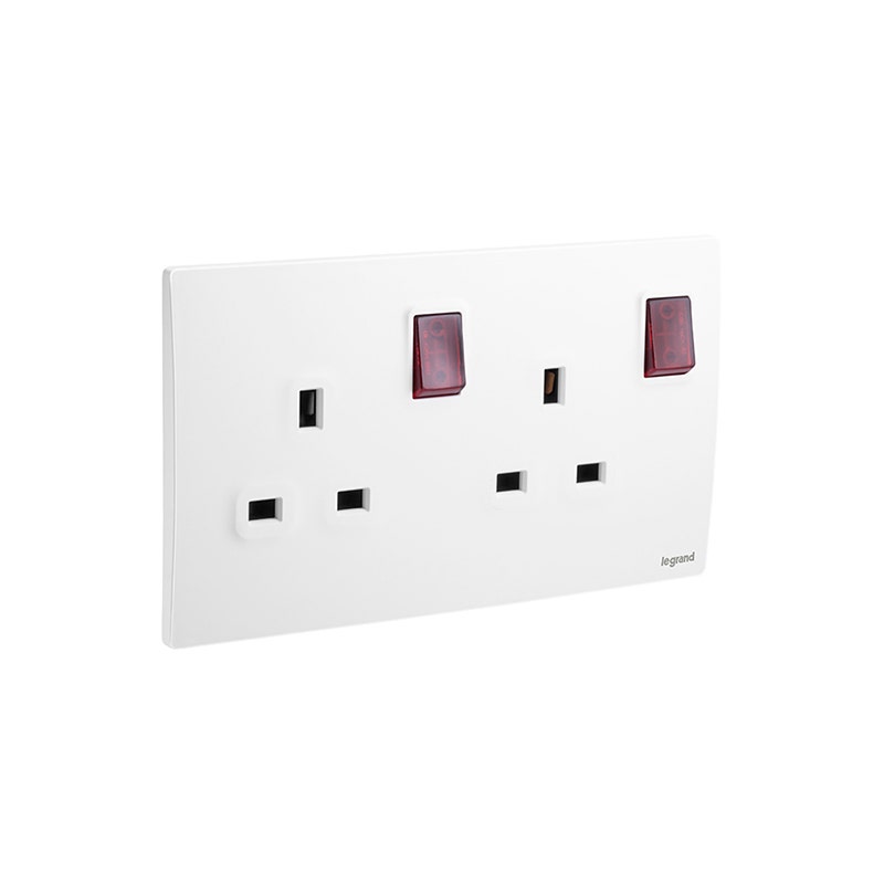 ليجراند – مخرج مأخذ مزدوج القطب Mallia Senses، BS، مجوز، 13A، 250V، مع LED، Matt White