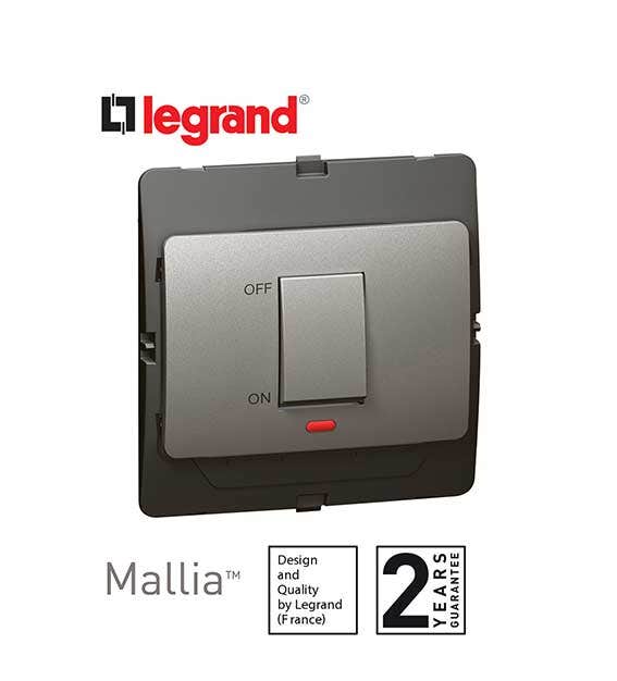 ليجراند – مفتاح مكيف ماليا – 45 أمبير – لؤلؤي – مع لمبة بيان – فضي غامق
