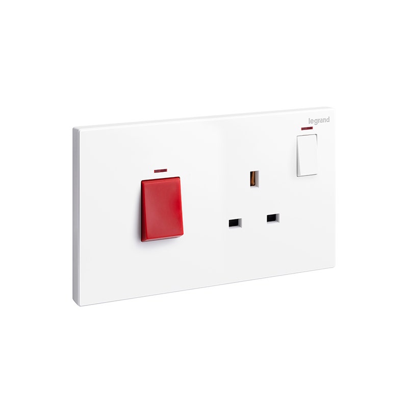 ليجراند – وحدة تحكم الطباخ Galion، مجوز، مفتاح قطبي مزدوج 45A مع مقبس قياسي بريطاني 13A، White
