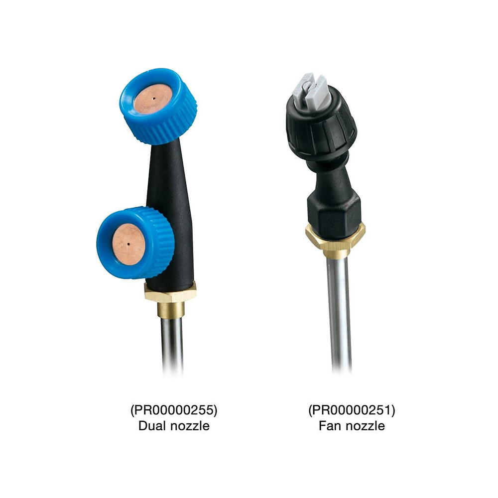 مزود بفوهتين مخروطيتين وفوهات مروحة مسطحة.
