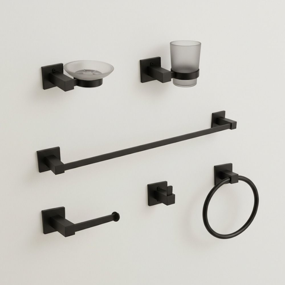 مجموعة اكسسوارات الحمام (6 قطع) – أسود مطفي