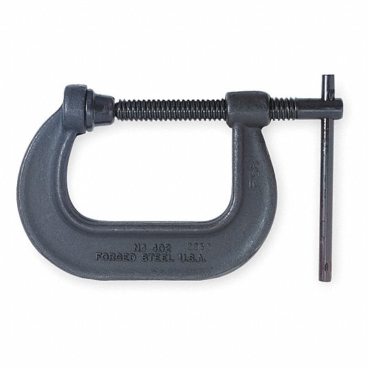 مشبك على شكل حرف C من الفولاذ, أقصى فتح 10 بوصة, عمق الحلق 5 3/8 بوصة, لون أسود