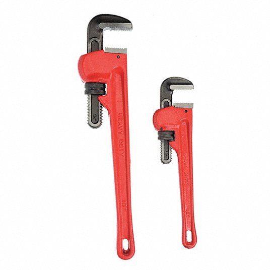مفتاح أنابيب، حديد زهر، سعة الفك 2 _2 1/2 بوصة، مسنن ، الطول الإجمالي 12 _18 بوصة