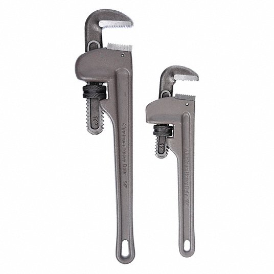 مفتاح ربط أنابيب مستقيم, ألومنيوم, سعة الفك 1 1/2 _2 بوصة, مسنن,الطول الإجمالي 10 بوصة_14 بوصة