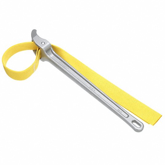 مفتاح ربط بحزام, القطر الخارجي 5 1/2 بوصة, طول المقبض 18 بوصة, عرض الشريط 1 3/4 بوصة
