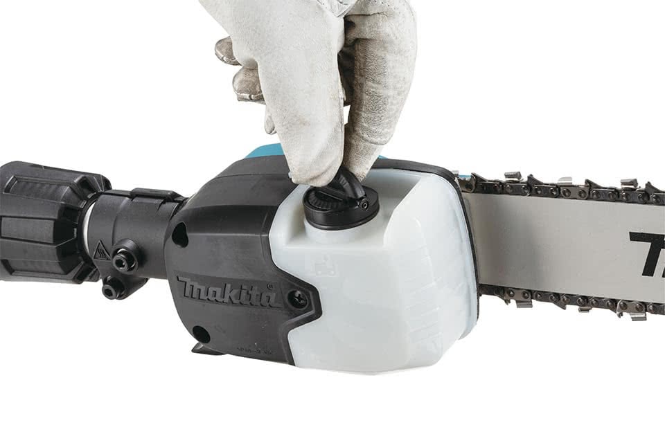 غطاء خزان زيت قابل للسحب يقلل من فرصة انزلاق رأس المنشار في الفروع.